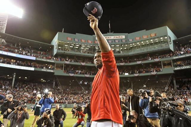 Red Sox designated hitter David Ortiz (34) salutes the fans after