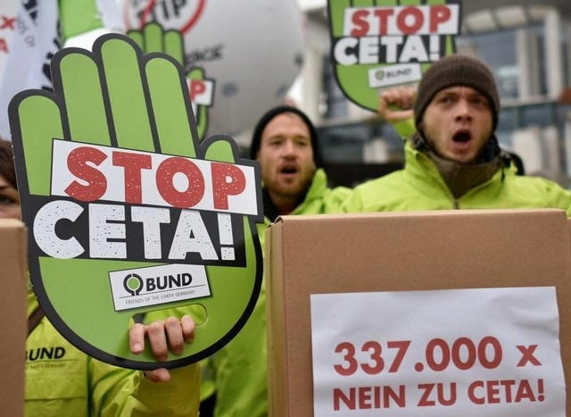 protest against CETA in front of the Chancellery in Berlin, Germany,