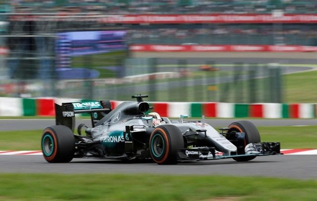 Mercedes' Lewis Hamilton of Britain in action during the race.