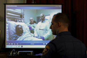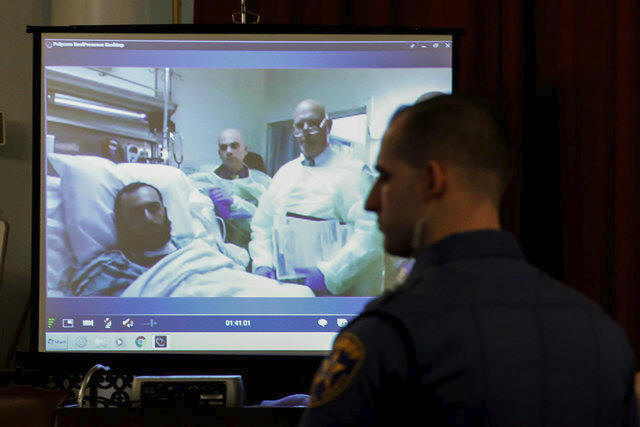 With his court-appointed lawyer, Peter Liguori, standing bedside in