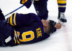 end boards. Kane lay on the ice for several minutes before being