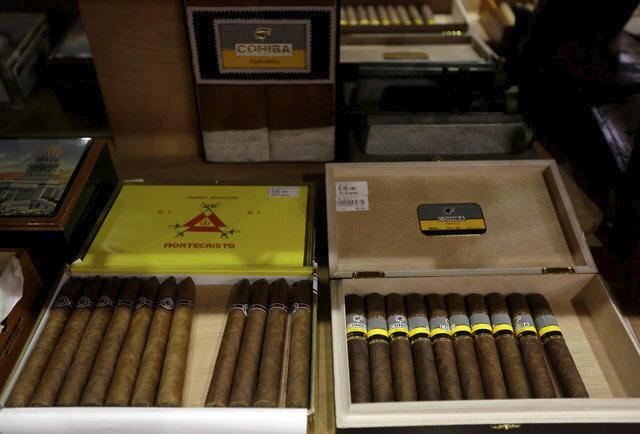 Cuban cigars for sale are displayed at a hotel in Havana, Cuba