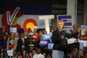 Democratic presidential nominee Hillary Clinton speaks at a rally at