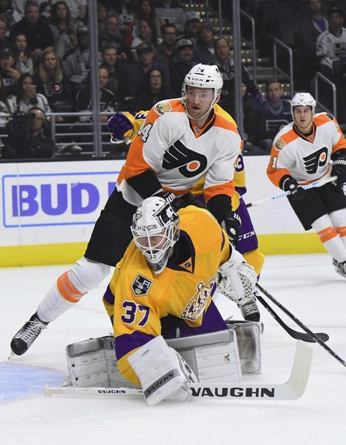 Flyers center Sean Couturier (14) collides with Los Angeles Kings