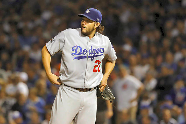 Dodgers starting pitcher Clayton Kershaw (22) reacts during the