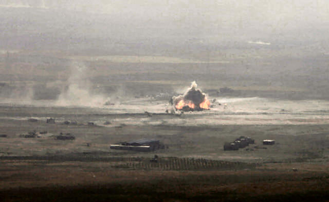 from burning oil being used to block the path of the Kurds and obstruct