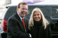 R) stand surrounded by family and friends during a candlelight
