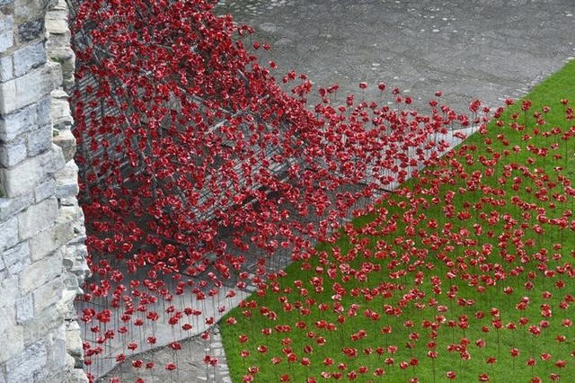 Window', a cascade of thousands of handmade ceramic poppies by