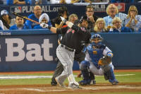 against Toronto Blue Jays catcher Russell Martin (55) during the