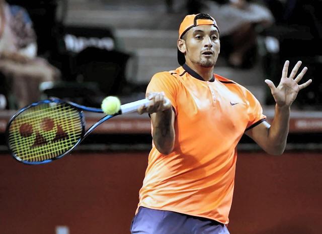 Nick Kyrgios of Australia returns the ball during the match