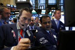 Traders work on the floor of the New York Stock Exchange (NYSE)