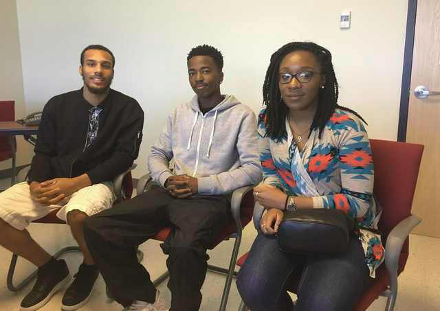 Joshua Goodson, 23, Mark Morris, 17, and Sydney Roy, 20, (L to R)