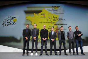 From L-R, riders Thibaut Pinot of France, Romain Bardet of France,