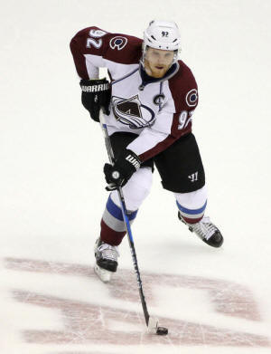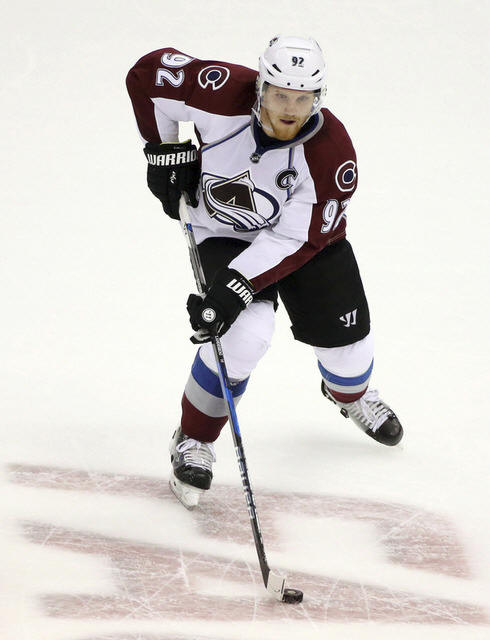 Avalanche left wing Gabriel Landeskog (92) carries the puck against