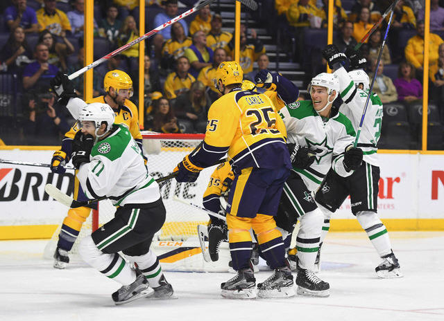 instantly. Spezza, Roussel and Radek Faksa buzzed the Nashville zone