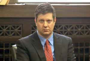Chicago police officer Jason Van Dyke sits in the courtroom during a