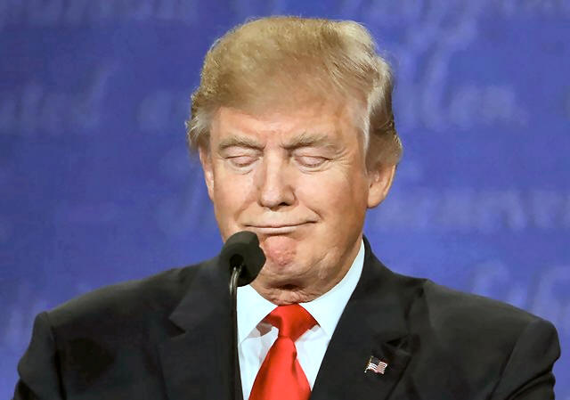 Republican U.S. presidential nominee Donald Trump reacts during the