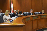 Adam Putnam, listen during a public meeting in Tallahassee,