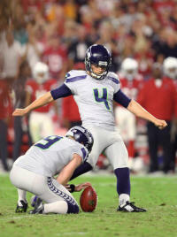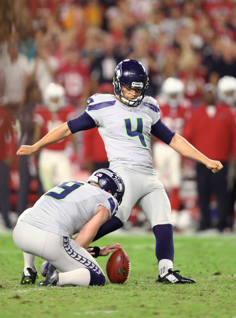 Steven Hauschka (4) kicks a field goal in the fourth quarter