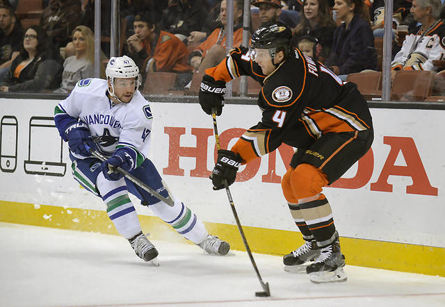 defense of Vancouver Canucks left wing Sven Baertschi (47)