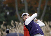 Park Sung-hyun of South Korea tees off on the ninth hole.