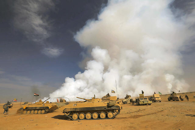 Iraqi forces, spearheaded by counter-terrorism units, advancing from the