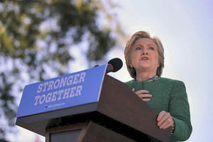 Democratic presidential nominee Hillary Clinton speaks at campaign