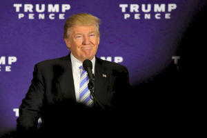 Republican U.S. presidential nominee Donald Trump delivers remarks