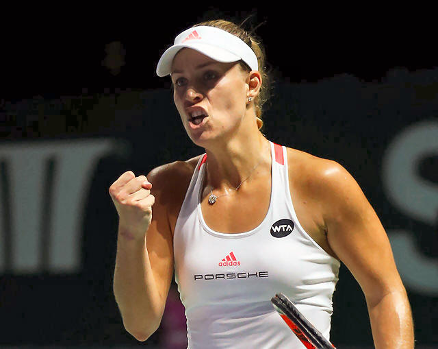 Angelique Kerber of Germany celebrates a point against Dominika