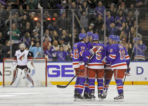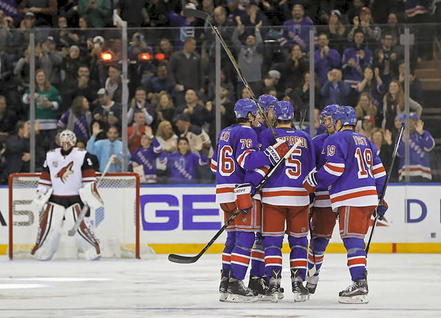 the Arizona Coyotes 3-2 at Madison Square Garden on Sunday night.