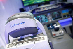 Boeing's logo is seen on its KC-46 Aerial refuelling operator's station demonstrator during Japan Aerospace 2016 air show in Tokyo, Japan, October 12, 2016. REUTERS/Kim Kyung-Hoon |