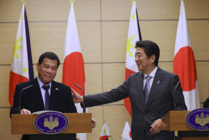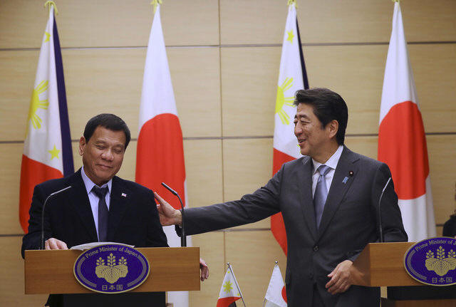 Philippine President Rodrigo Duterte (L) and Japan's Prime Minister