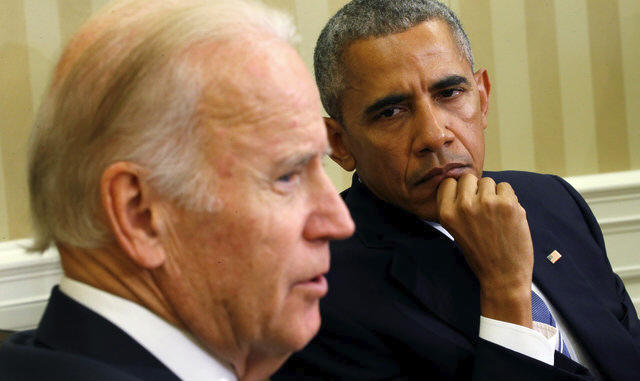 President Barack Obama listens as U.S. Vice President Joe Biden