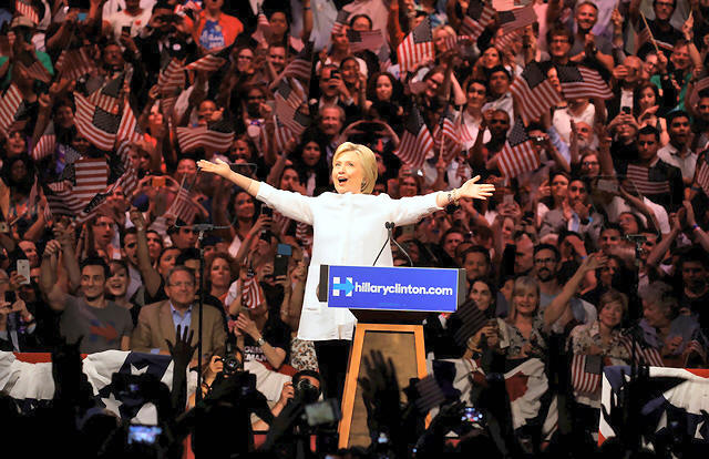Hillary Clinton arrives to speak during her California primary night