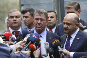 Defense Secretary Ash Carter, accompanied by Turkey's Defense