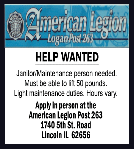 Street, Lincoln, Illinois. (217) 732-3059 or baukamp@co.logan.il.us
