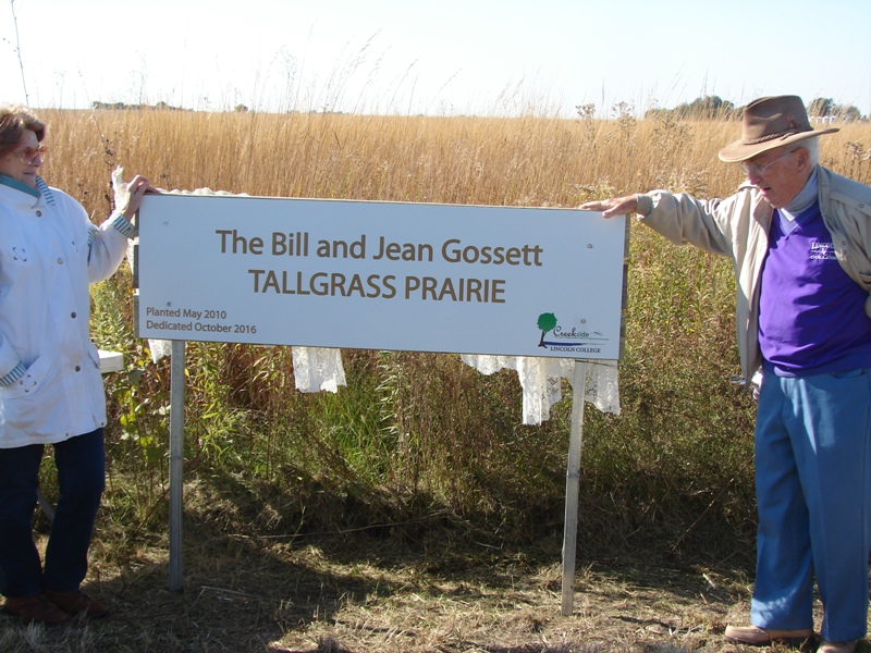 Years ago Bill and Jean were joined by students, faculty and staff to “plant seeds of the past for the future.” Together one acre of tall prairie grass has been planted.