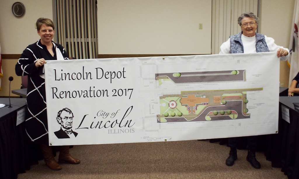 Marty Neitzel, right, and Alderwoman Michelle Bauer hold up the new