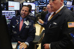 Traders work on the floor of the New York Stock Exchange (NYSE)