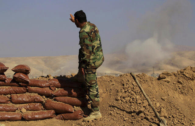 A Kurdish Peshmerga soldier who is stationed between two front lines