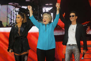 Jennifer Lopez and Marc Anthony at a campaign concert in Miami,