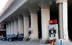 Cars wait to fill with fuel at Sinopec's fuel station in Beijing,
