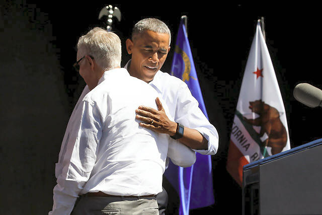 Senate Minority Leader Harry Reid (D-NV) (back to camera) embraces
