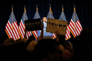 Republican presidential nominee Donald Trump speaks at a campaign