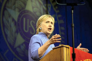 Democratic presidential nominee Hillary Clinton addresses the