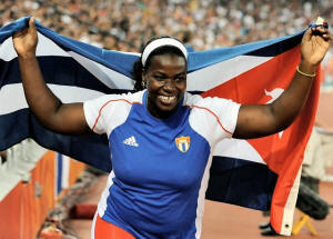 Yarelys Barrios of Cuba celebrates after finishing second in the