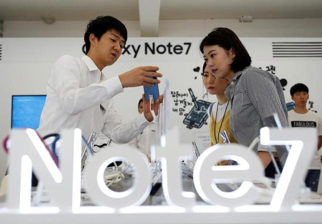 Note 7 new smartphone at its store in Seoul, South Korea, September