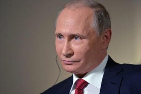 Russian President Vladimir Putin looks on during an interview in