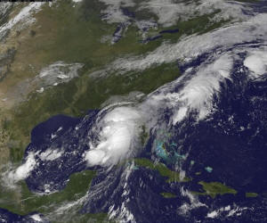 Tropical Storm Hermine is shown over the Gulf of Mexico in this GOES