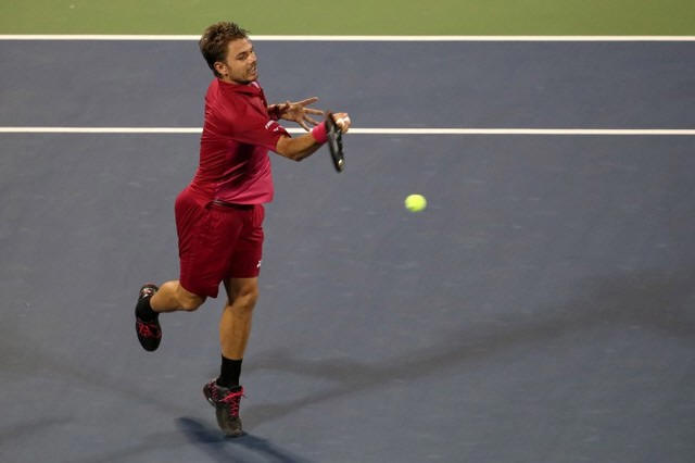 Stan Wawrinka of Switzerland hits a forehand against Alessandro